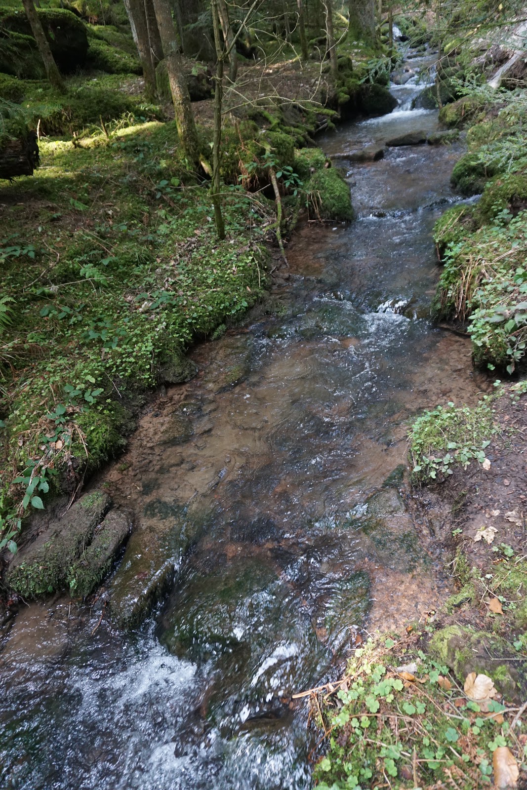 Wir schlendern auf engen Pfaden durch das romantische Rötelbachtal und erreichen bald darauf das Wildgehege Calw, wo wir in sichererr Entfernung Wildschweine beobachten können.